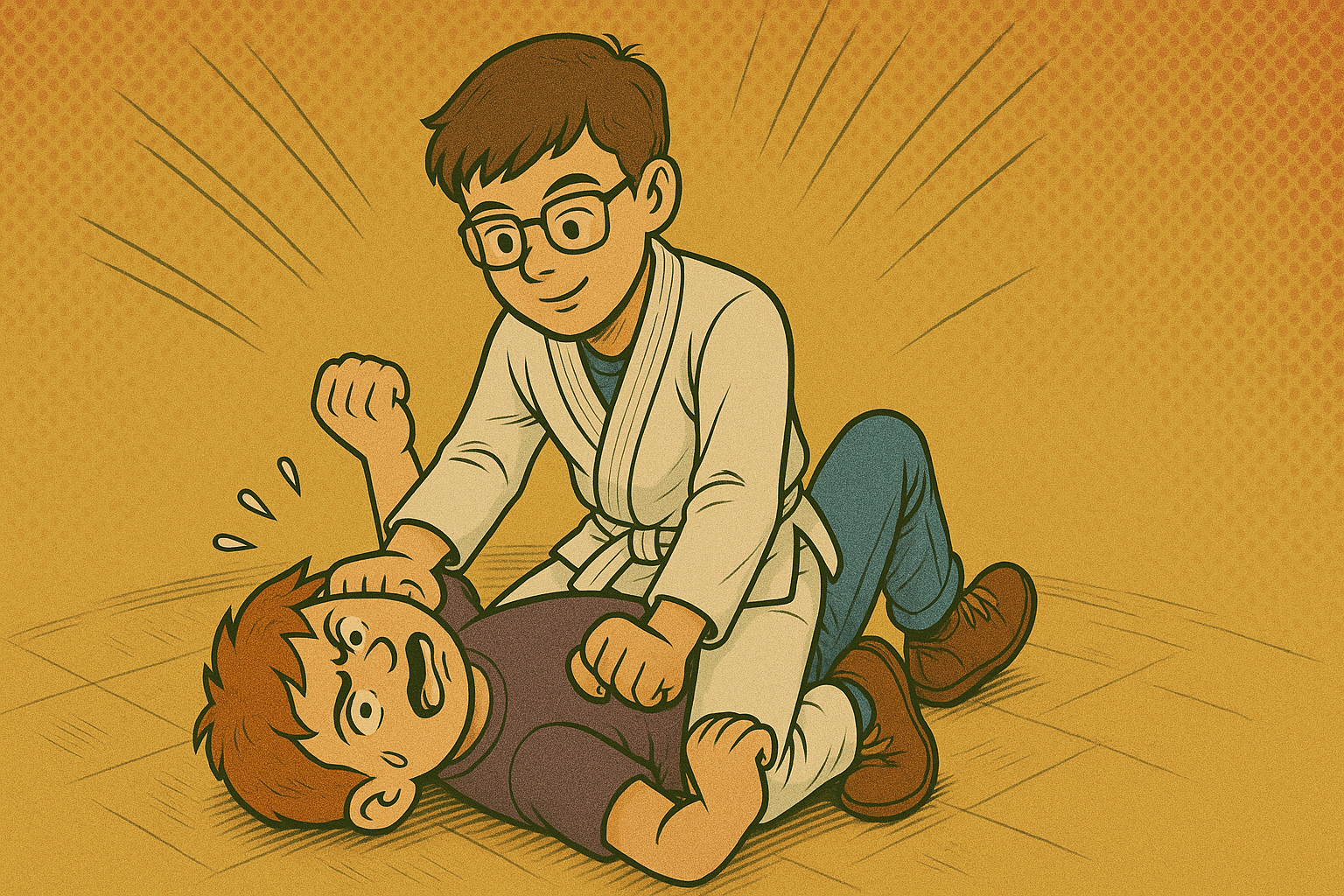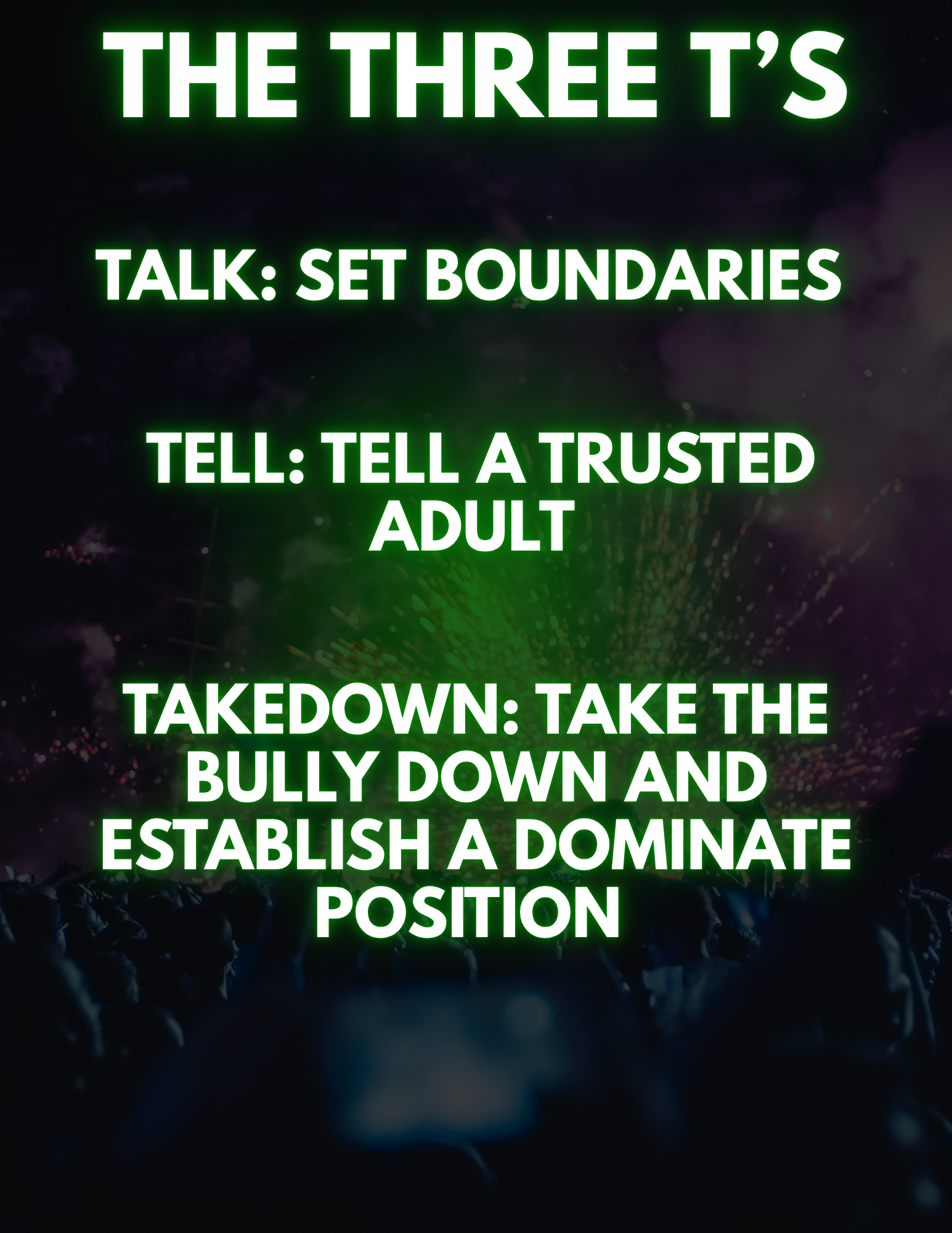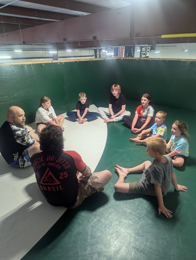While other martial arts require punching or kicking for self-defense, Jiu-Jitsu's emphasis on controls (Position Before Submission) and the ability to control the amount of strength being used providing a superior means of defending themselves. We teach our students that this same super power of tiring out a bully without the use of punches and kicks allows for us to negotiate and talk with our bully. We teach our Mat Monsters that from a safe position they can talk and negotiate with their bully, our go to phrase is "Do you promise to leave me alone?" and "I won't let you go until you promise to leave me alone."
